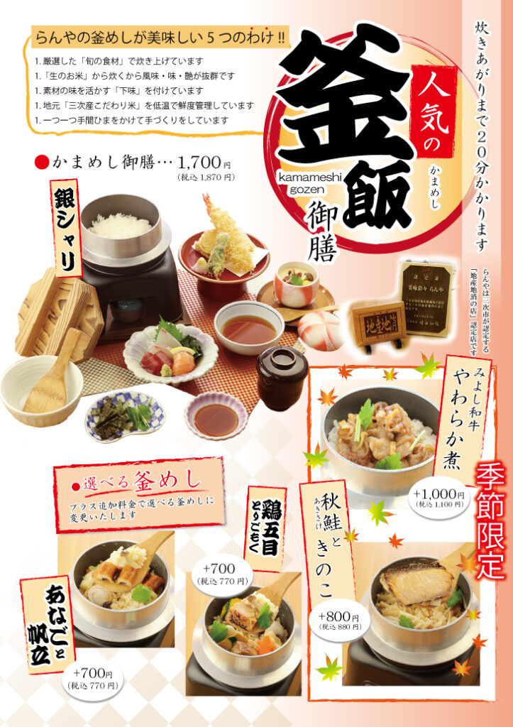 お待たせいたしました!新作、季節限定の釜めし御膳がスタートしました!!